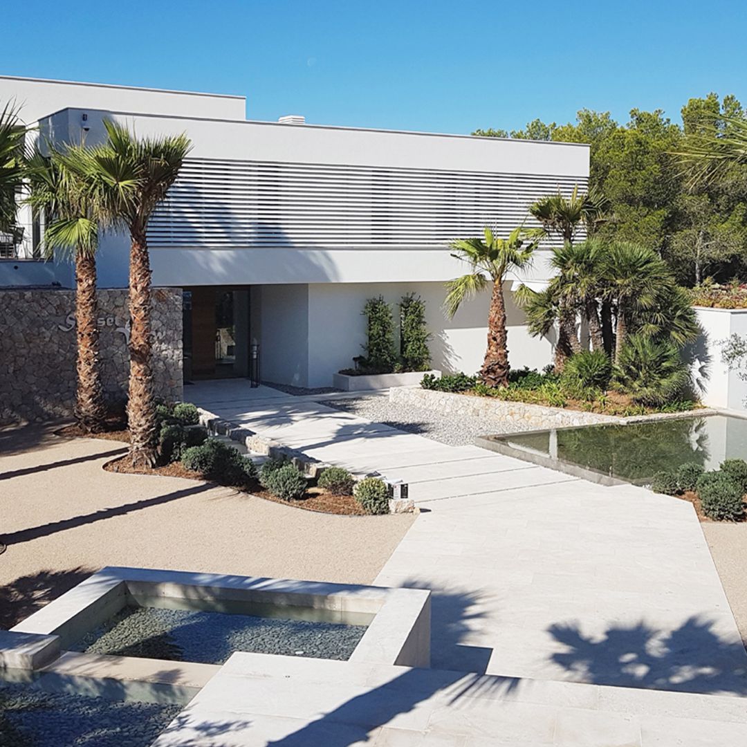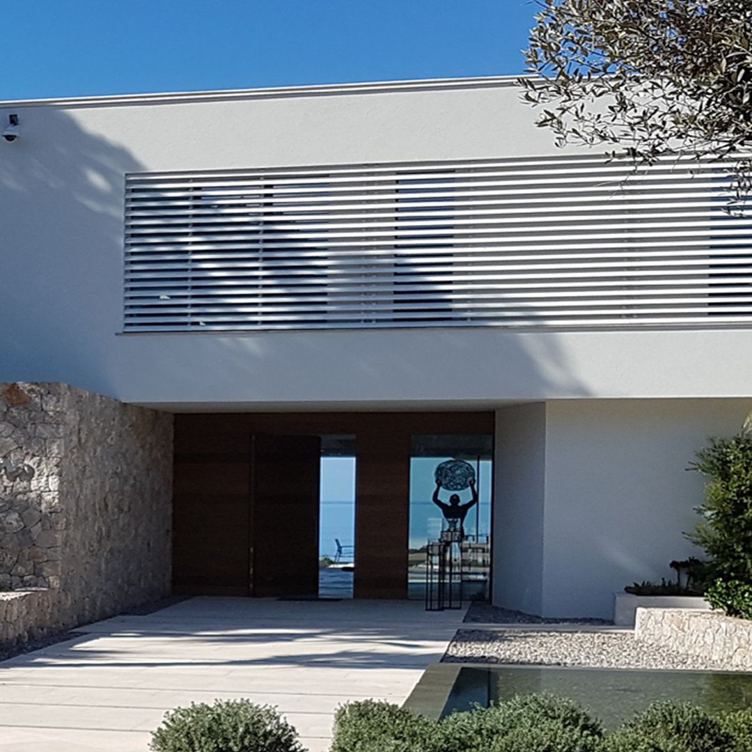 Las lamas Renson Icarus 150 Quickfix con forma de ala de avión y sección de 125x25mm han conferido un estilo llamativo en el revestimiento de la fachada principal de esta villa diseñada por los arquitectos Tarragona Höhne Arquitectos. Las lamas Icarus Quickfix tienen un sistema patentado de clipado (que permite un montaje mucho más rápido que cualquier sistema de lamas convencional), soluciones pre-diseñadas para las esquinas y sus lamas permiten absorber la expansión debida a las diferencias térmicas.